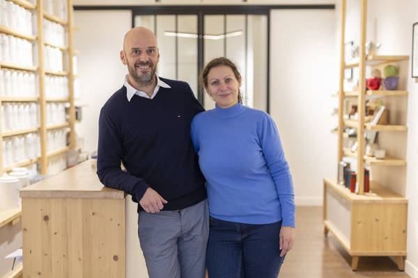 Leur carrière les a amenés à voyager à travers le monde, mais c’est leur envie d’entreprendre et l’amour du thé qui a mené Nathalie et Daniel Cotte à Lyon. « Avoir un projet qui met les sens en éveil, et notamment le goût, devait se faire dans la capitale mondiale de la gastronomie », lance Nathalie, cocréatrice de la marque Human & Tea depuis 2016. Dans leurs boutiques, deux à Lyon et une à Paris, chaque catégorie de thé – vert, noir, bleu, rooibos orangé, blanc – bénéficie de sa propre couleur de boîte. Au total, une centaine de références de thés et d’infusions en provenance de plantations de Chine, d’Inde, du Sri Lanka, du Japon, de l’Himalaya et du Tibet sont proposées. Chaque pays ou chaque région dispose de son propre mode de culture, c’est pourquoi chaque variété reflète son terroir d’origine, à la manière des grands crus dans le vin. De quoi voyager à chaque tasse.