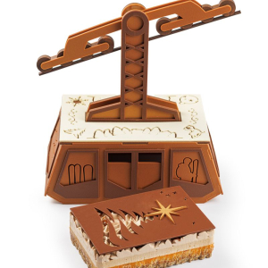 Restons dans le thème avec cette toute nouvelle création signée Sébastien Bouillet : l'entremets Le Sommet, à l'allure d'une télécabine. La douceur d‘une ganache montée gianduja rencontre la fraicheur acidulée de la compotée de clémentine Corse et le croquant d'un streusel noisette sur un biscuit joconde noisette. Le tout est couronné par un décor en chocolat de 1kg.