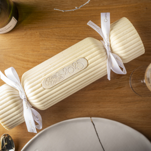 Grains de Sucres revisite une tradition de Noël venue de nos voisons anglo-saxons : les crackers. Sous les coups de spatule des chefs pâtissiers Pauline Dorange et Nolwenn Pellet, l'historique cracker anglais, petites papillotes cartonnées arborant des couleurs et motifs de Noël, se transforme en délicieuse bûche de Noël : le cracker par Grains de Sucres. Le résultat : biscuit moelleux aux poires pochées, un croustillant praliné et pécan, une mousse vanille et compotée de poires, le tout reprenant l'esthétique d'un cracker couleur crème avec de jolis rubans.