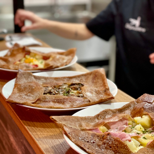 Pour commencer, rien de tel qu’un incontournable de la crêpe sur Lyon : Breizh Café. L'adresse promet de travailler la crêpe autrement ! Le patron des lieux, Bertrand Larcher, met à l'honneur le terroir breton et le marie aux influences japonaises avec des Breizh rolls. La pièce maîtresse de la carte ? La galette au jambon blanc artisanal, avec comté et un beurre de baratte généreusement présent dans l’assiette ! On y déguste également une sélection de cidres fermiers et de produits de la mer.