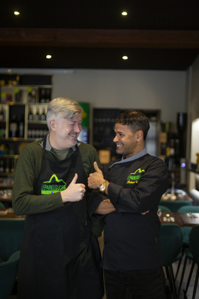 L’histoire commence avec Robson sur les plages d’Angra Dos Reis, au Brésil. Tombé amoureux de la cuisine, il quitte sa ville natale dès 2002 pour rejoindre le restaurant de sa sœur installée en France, à Lyon. Contrainte de rentrer au pays pour quelques mois, elle laisse finalement ses clés et sa cuisine à son frère, déjà conquis par la ville, sa gastronomie et le foie de veau de la Brasserie Georges. Robson n’est jamais reparti et a ouvert, avec Philippe, son propre établissement : Le Pain de Sucre.