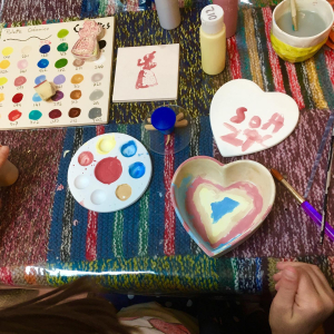 Contrairement à l’atelier Milo, Manitas ne permet pas de confectionner de la céramique. Ici, on peint dessus et on adore ça !
