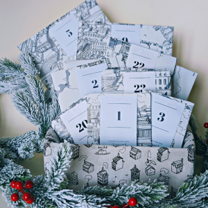 L'illustratrice lyonnaise Emilie Ettori est de retour cette année avec son calendrier de l'avent. Dans 24 pochettes faites de papier de soie illustré, découvrez de la papeterie, des cartes de vœux et des surprises exclusives issues de sa boutique, pour une valeur totale de 140 €. Chaque vue de Lyon est dessinée à la main, à la plume et à l'encre de Chine.