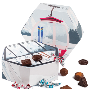 Cet hiver, le pâtissier chocolatier Sébastien Bouillet revisite le calendrier de l'avent en rendant hommage à la montage. Dans un emballage 100% recyclable rappelant une cabine de téléphérique, dégustez 23 confiseries, chocolats, biscuits et créations exclusives. Et pour le 24 décembre ? Une surprise vous attend (petit indice : l'incontournable de l'hiver).
