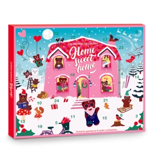 Parmi les trois calendriers de l'avent vendus chez Violette et Berlingot, c'est celui Oursons Guimauve qui nous a séduit avec l'univers mignon et gourmand de la marque Sophie M. Le calendrier contient 8 variétés de confiseries, réparties dans 24 cases. Au menu, nougats de Montélimar, sucres d'orge, biscuits au beurre, guimauves fantaisie enrobées de chocolat au lait ou de chocolat au lait avec décor alimentaire et sucettes bonbon de sucre cuit. De quoi régaler les petits gourmands.