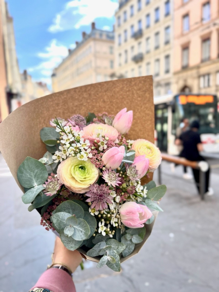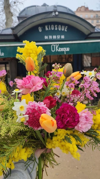 La philosophie de ce kiosque du 6ème arrondissement est de rendre accessible la fleur française tout en lui apportant un regard neuf, dans un esprit jardin, sans complexe et sans chichi. Également adhérente du Collectif de la Fleur Française, Cloé, sélectionne ses fleurs tous les deux jours afin de maîtriser les pertes sèches. Elle choisi avec passion ses fleurs, notamment chez ses deux fournisseurs principaux, situés à St Priest et Civrieux d’Azergue. La démarche écoresponsable d’O’kiosque est aussi présente dans son système de tri et de récupération des végétaux, des cartons et de l’eau. Le petit plus : des produits annexes à la fleur et made in France sont proposés, comme les ollas hydratantes Pépin et les cartes lyonnaises Pramax.