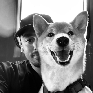 « C’est une photo de Taïa, ma chienne de deux ans, et moi. J’adore la tête qu’elle a dessus. Je l’affiche souvent sur les réseaux, c’est un peu la mascotte du salon. »
