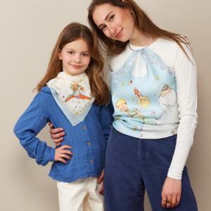 PAPIER MERVEILLEÀ l’occasion des 80 ans de la sortie du Petit Prince aux États-Unis, la Maison Malfroy, créatrice de soierie lyonnaise, a dessiné trois foulards poétiques à l’effigie du célèbre personnage d’Antoine de Saint-Exupéry. Chaque saison, la collection s’enrichit de trois nouveaux foulards, elle en compte désormais neuf.
