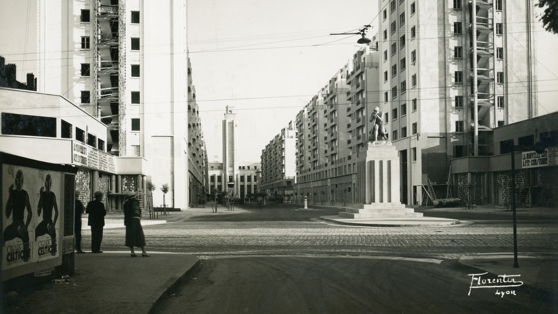 Commune rurale au XIXe siècle, Villeurbanne connaît une explosion démographique sans précédent avec l’industrialisation. La ville manque alors de tout, d’écoles, de lieux de soins et de divertissements, de logements salubres... Élu maire socialiste en 1924, et bien conscient de cette réalité, le docteur Lazare Goujon souhaite faire du quartier des Gratte-Ciel le nouveau centre de la ville.