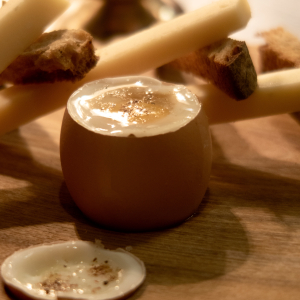Si la carte du Café Terroir a pris des orientations bistronomiques, voire gastronomiques, il y a un plat indéboulonnable qui fait le bonheur des habitués et des petits nouveaux depuis le début : l’œuf à la coque accompagné de mouillettes au beaufort de 24 mois.