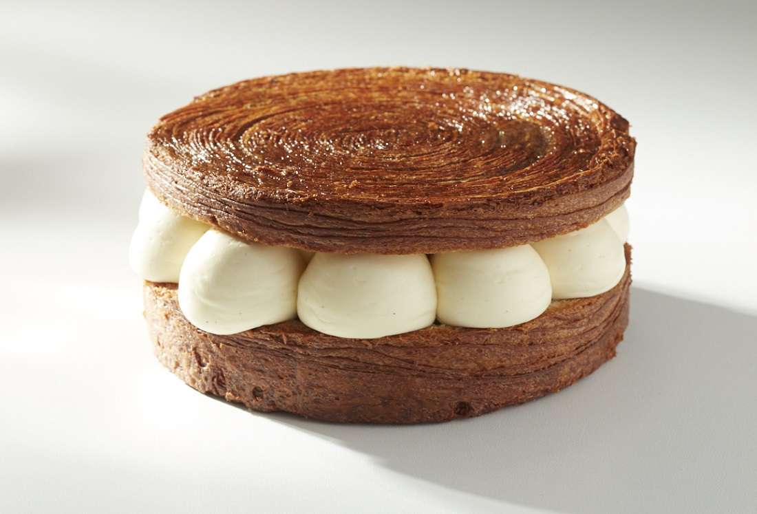 La pâte est prête : l’étaler à 1,5 cm d’épaisseur, puis tailler des bandes de 100 cm x 3,5 cm. Rouler chaque bande en forme de cylindre, les unes dans les autres pour former un cercle de 16 cm autour. Puis la déposer sur un papier cuisson. Laisser pousser la pâte 2 h à 28 °C puis cuire 30 minutes à 160 °C.