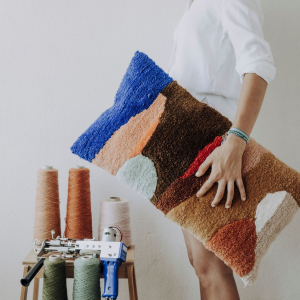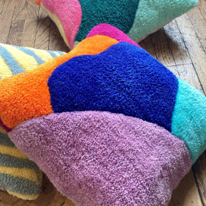 Créatrice de la marque lyonnaise Septembre Papeterie, Claire Baldairon a découvert le tufting au hasard d’une formation. Désormais, elle apprécie de voir ses motifs prendre leurs aises sur des coussins, tableaux et autres décorations murales en laine.