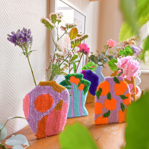 Près de dix ans que Julie Robert détourne et valorise des techniques anciennes comme le tissage, la broderie et le punch needle. Designer textile, elle réalise des pièces uniques, des tableaux sur mesure, et dispense régulièrement des ateliers créatifs thématiques, notamment à Lyon. En attendant, dévorez son Atelier Tufting, livre de pas-à-pas sorti chez Marabout.