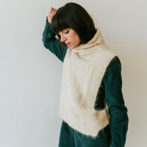 Dans le dressing idéal de Lisa, la fondatrice de Bonny, on craque pour ce pull sans manches en alpaga, duveteux à souhait.