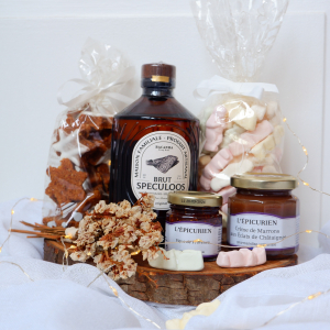 Pour les fêtes, Marie-Claude, fondatrice des lieux, a imaginé un coffret réunissant les meilleures saveurs de Noël : étoiles à la cannelle, meringues de Noël, sirop Bacanha 40cl parfum au choix, ainsi qu’une crème de marrons ou une confiture de Noël 125g et une confiture « Figue de Provence » 50g.